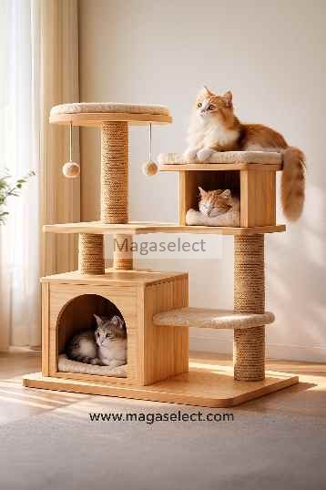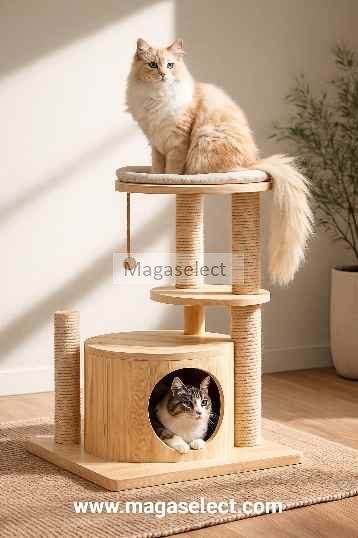 The Magaselect Natural Wood Cat Tree brings together durability, craftsmanship, and minimalist Scandinavian aesthetics. Designed for both cats and small pets, this solid-wood climbing tower is available in Paulownia, Pine, Birch, Poplar and other versions—each offering unique texture, color, and natural scent.