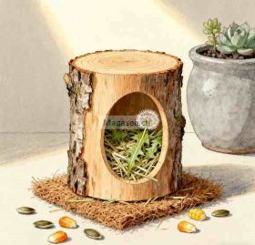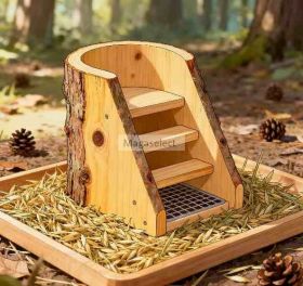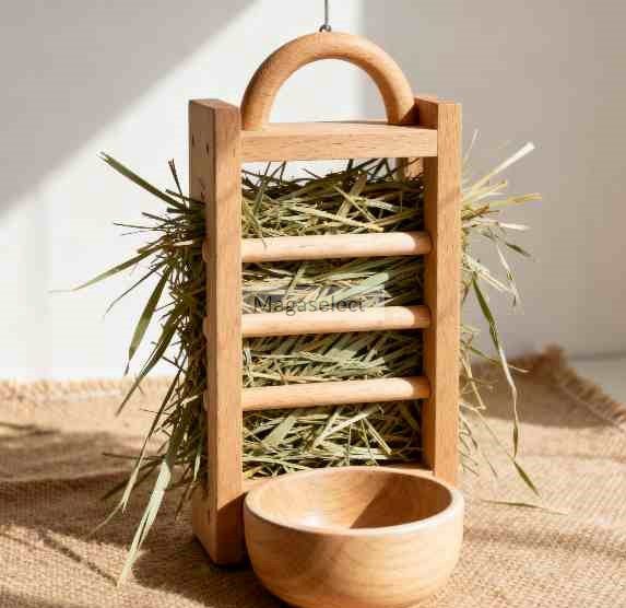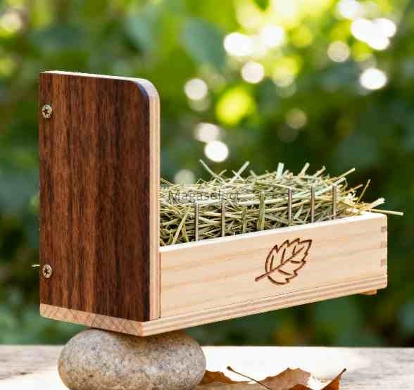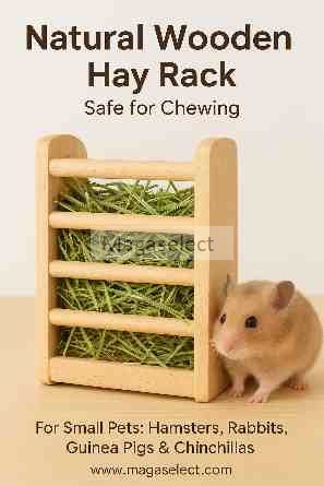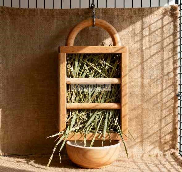 This natural wooden Hay Rack Feeder is crafted from high-quality solid wood, providing durability, stability, and a clean feeding environment for small pets such as hamsters, chinchillas, rabbits, and guinea pigs. The open-frame design keeps hay clean and dry while making refilling easy. Made from 100% natural wood with no chemical coatings, it is safe for chewing and ideal for supporting healthy digestion and fiber intake. Its simple, natural aesthetic fits perfectly into any pet habitat.