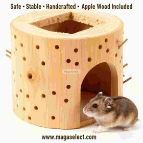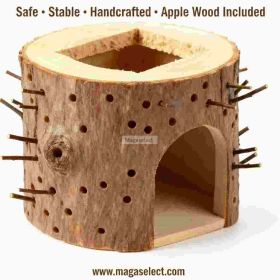 This natural birch|poplar chew log is crafted from whole solid wood with a clean and organic surface. Multiple irregular holes around the log allow apple sticks or chew sticks to be inserted, creating engaging enrichment for small pets. The hollow center works as a hideout or resting space, combining chewing, exploring, and shelter in one product.