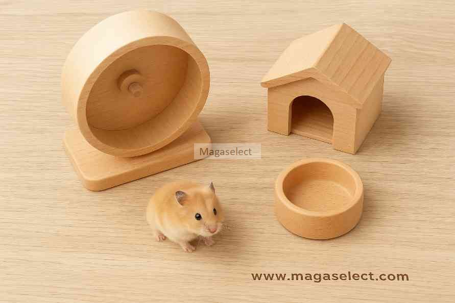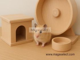 The Magaselect Natural Beech Wood Hamster Home Set blends minimalist design with natural comfort. Each piece is made from solid beech wood—smooth, odor-free, and safe for small pets. The silent wheel allows nighttime exercise without noise, the cozy wooden house offers a secure resting space, and the sturdy bowl keeps meals tidy and easy to clean. Perfect for hamsters, gerbils, and other small pets, this set elevates both your pet’s wellbeing and your home’s aesthetic.